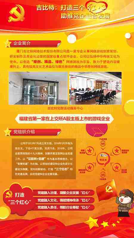 未來公司將全面學習貫徹習近平新時代中國特色社會主義思想和黨的十九大精神,,,,持續強化“互聯網+黨建”的思維理念,,以“智慧黨建”為主軸,,,,以黨組織建設和企業先進文化建設為側翼,,,雙向創新驅動,,,,引領有信仰、、、、有情懷、、、有價值的新時代游戲研發運營,,,,在不斷發展壯大的同時,,,成為行業的“紅色標桿”,,實現黨建和企業發展雙贏。。