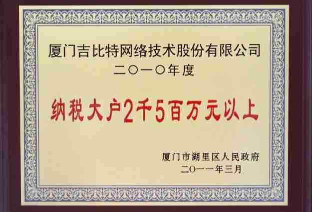 日前,,,公司被廈門市湖里區人民政府授予了“2010年納稅大戶”的榮譽稱號,,充分體現了公司一貫合法納稅、、誠信經營的良好企業社會公民行為。。
